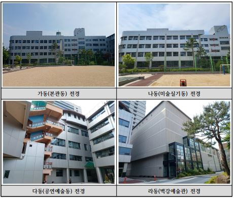 지상5층 (가동(본관동), 나동(미술실기동), 다동(공연예술동), 라동(벽강예술관))